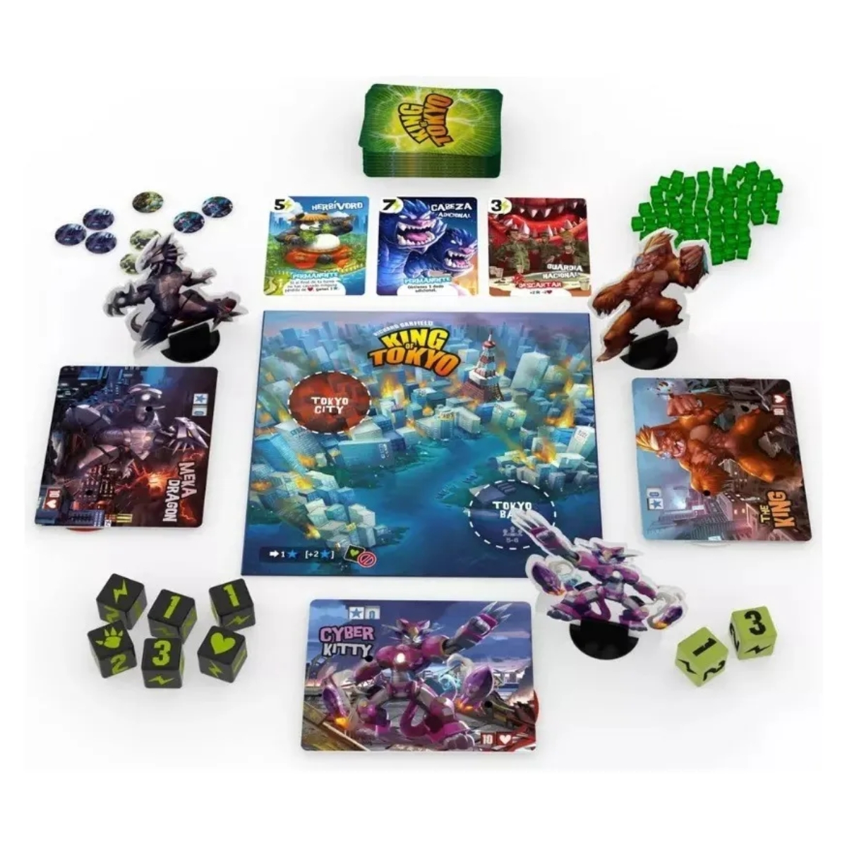 O caos está de volta em King of Tokyo: Monster Box, a edição definitiva do clássico jogo de monstros gigantes! Essa versão especial reúne o jogo base King of Tokyo e suas principais expansões, além de componentes exclusivos e uma caixa premium perfeita para colecionadores.
