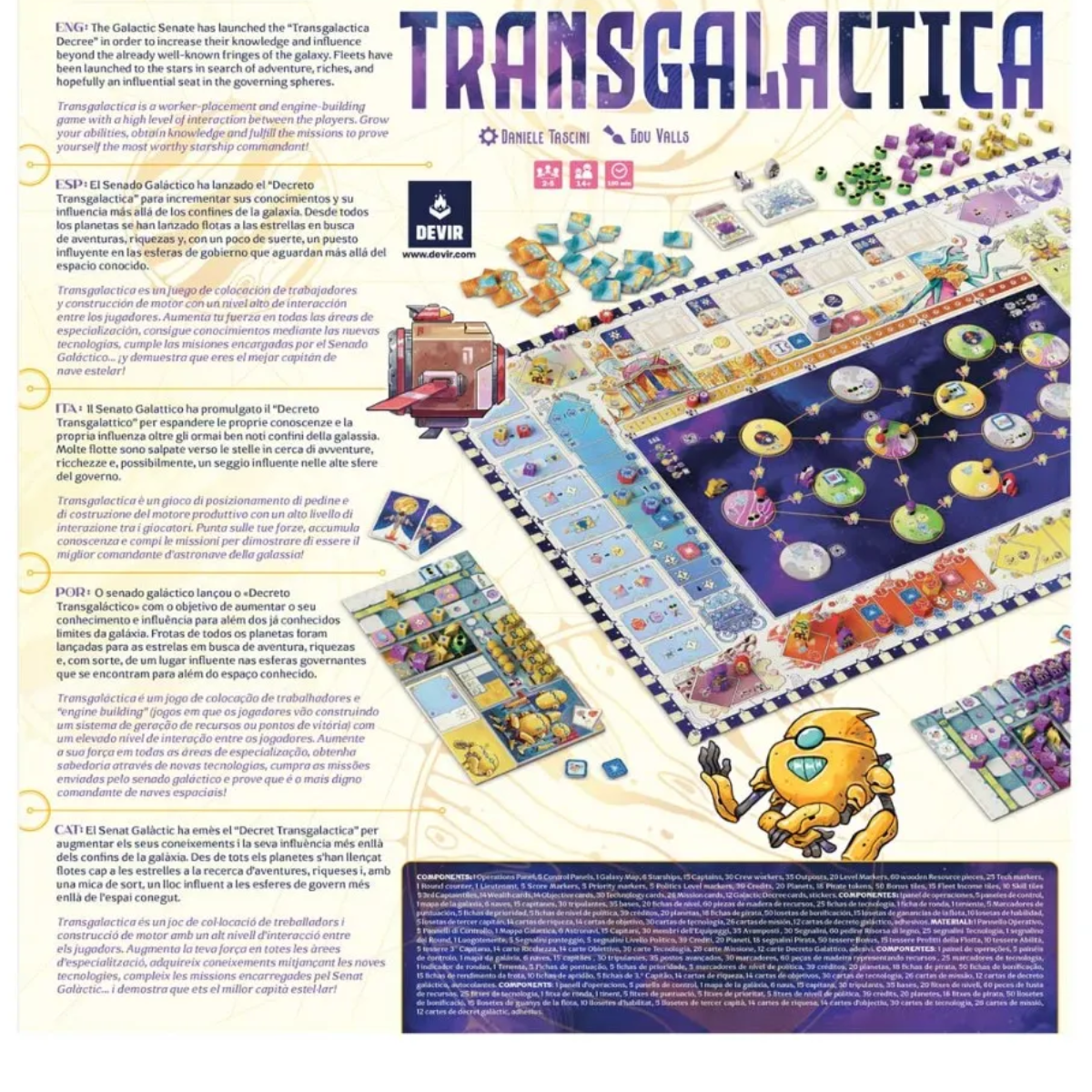 Embarque em uma aventura cósmica com Transgalactica, o jogo de tabuleiro da Devir em que você se torna o capitão de uma nave espacial em busca de fama, glória e muitas oportunidades interplanetárias!