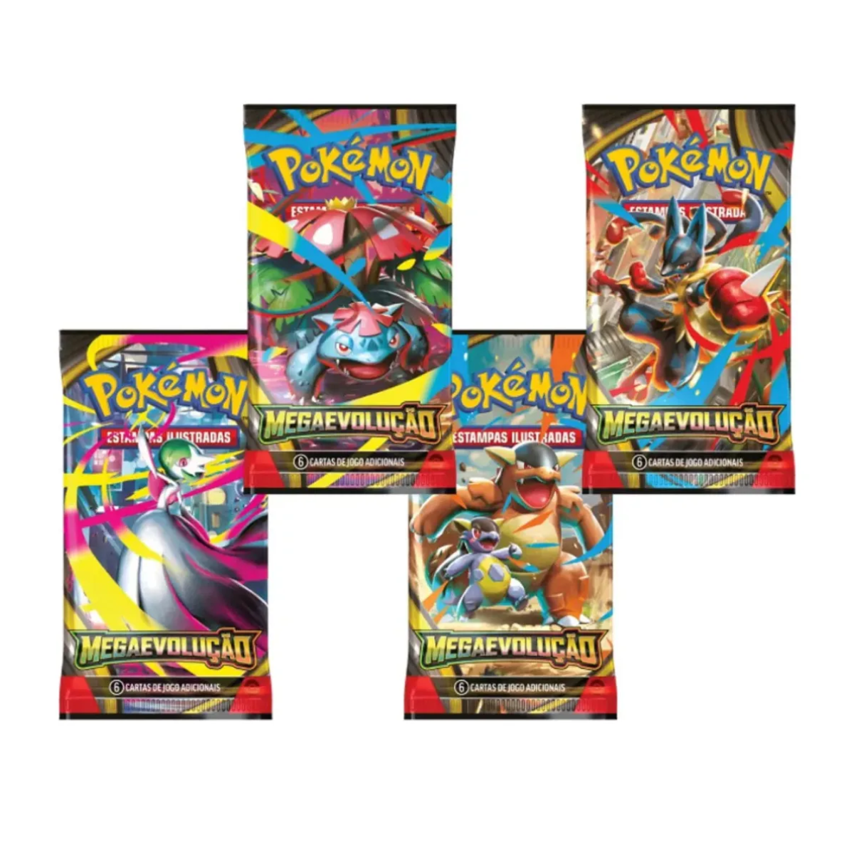 - 4 boosters da coleção Mega Evolução (6 cartas cada, em português)